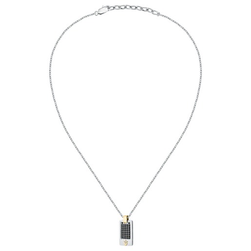 Collar Maserati Caballero en acero y decoraciones en acero IP doradoJM334AVD49 ICONIC PEND. W/ BLK STONE & IP YG 45+5CM MASERATI GIOIELLI