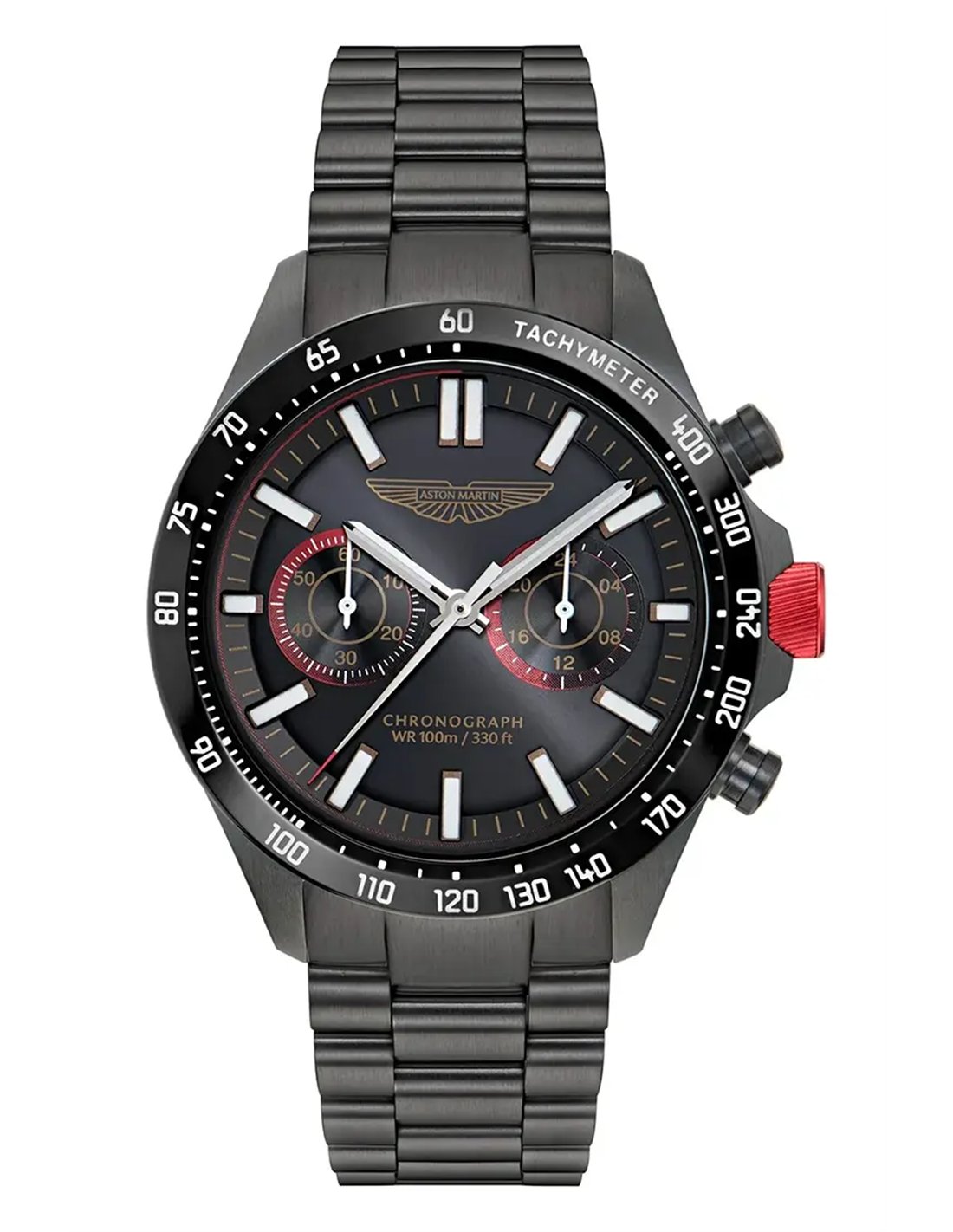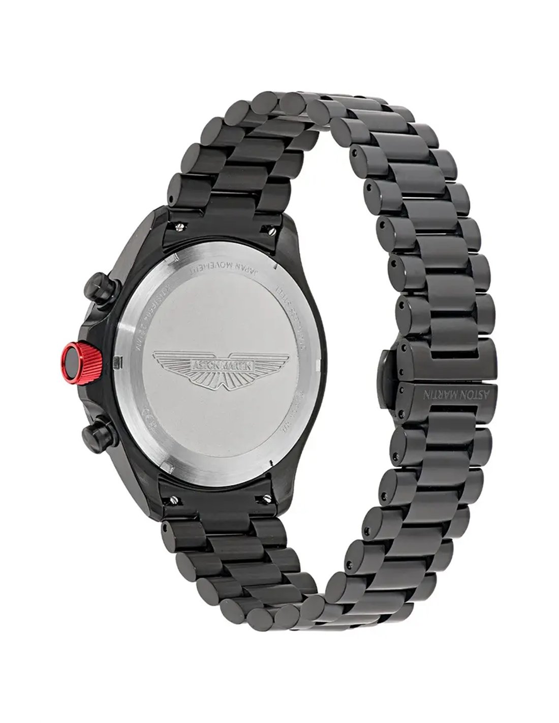 MTIS1F504 Espectacular reloj Aston Martin cronógrafo-taquímetro En Acero IP negro, con líneas clásica, cristal retro y corona en rojo competición.